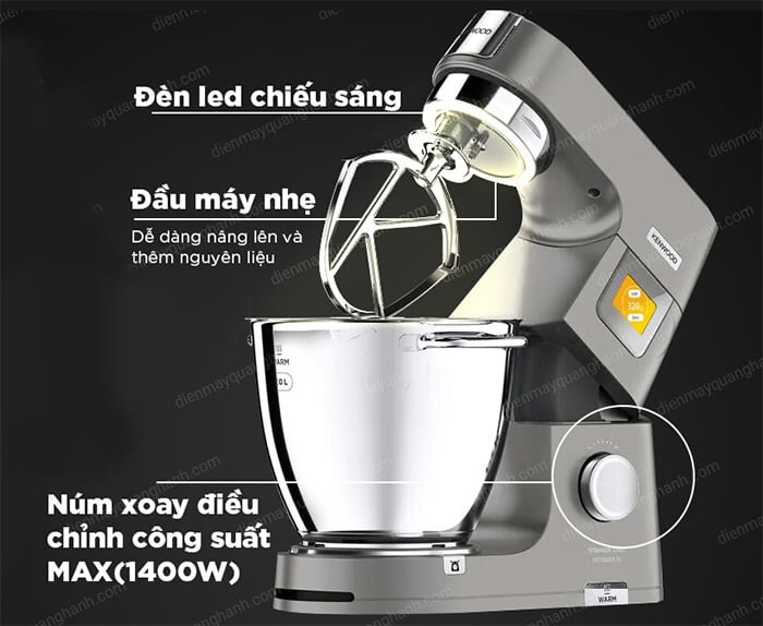 Kenwood KWL90.004SI sở hữu công suất lên đến 1400W có thể trộn được kể cả các loại bột khó nhằn nhất như khô hay nặng sẽ cho bạn kết quả mỹ mãn nhất.