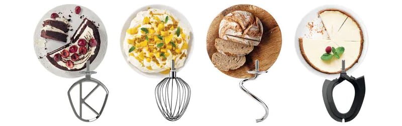 Kenwood Titanium Chef Patissier XL KWL90.004SI đi kèm 4 dụng cụ trộn đa năng như đánh kem, đánh trứng, dụng cụ đánh bột hình chữ K, dụng cụ nhào bột hỗ trợ từ đơn giản đến phức tạp cho các bữa sáng hay các buổi tiệc.