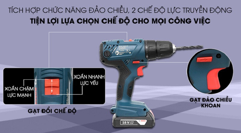 Tích hợp chế độ đảo chiều giúp khoan dễ dàng