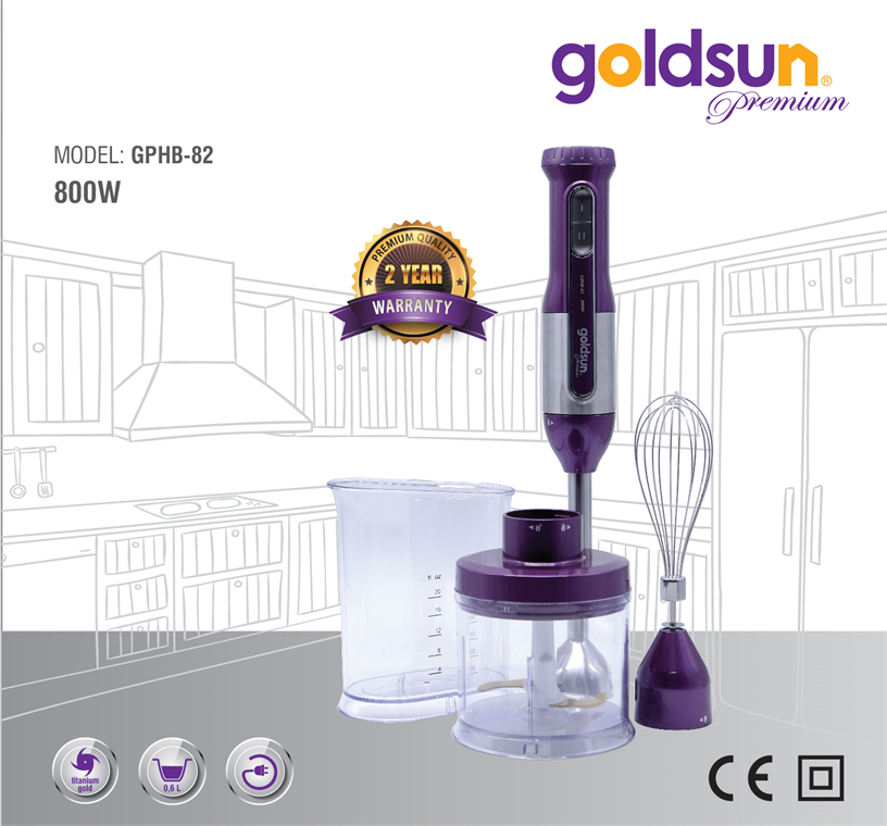Với thiết kế cầm tay tiện lợi cùng các phụ kiện kèm theo, máy xay cầm tay Goldsun Premium GPHB-82 giúp các bà nội trợ thoải mái trổ tài chế biến các nguyên liệu như: đánh trứng, trộn kem, xay nghiền các loại hạt hay gia vị khô với cối xay tiện lợi hay thoải mái chế biến các thức uống như sinh tố trái cây.