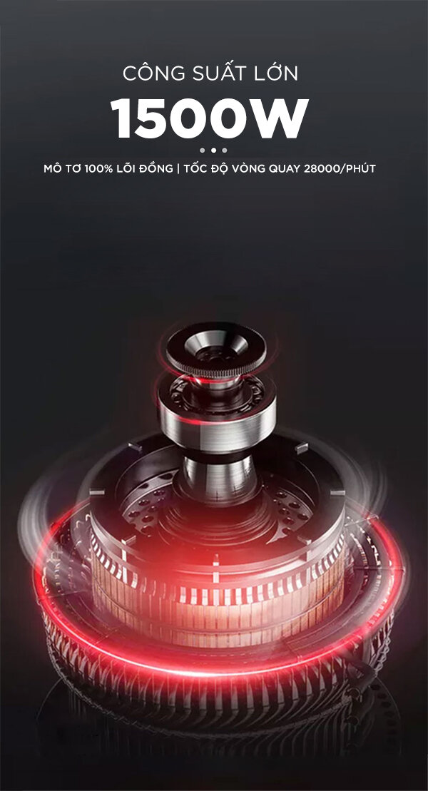Với Mô tơ 100% lõi đồng, công suất 1500W, tốc độ vòng quay 28000/phút, máy xay sinh tố là trợ thủ đắc lực giúp bạn xay nhuyễn đồ ăn, hoa quả, cho việc nấu nướng nhanh chóng, tiết kiệm thời gian và điện năng.