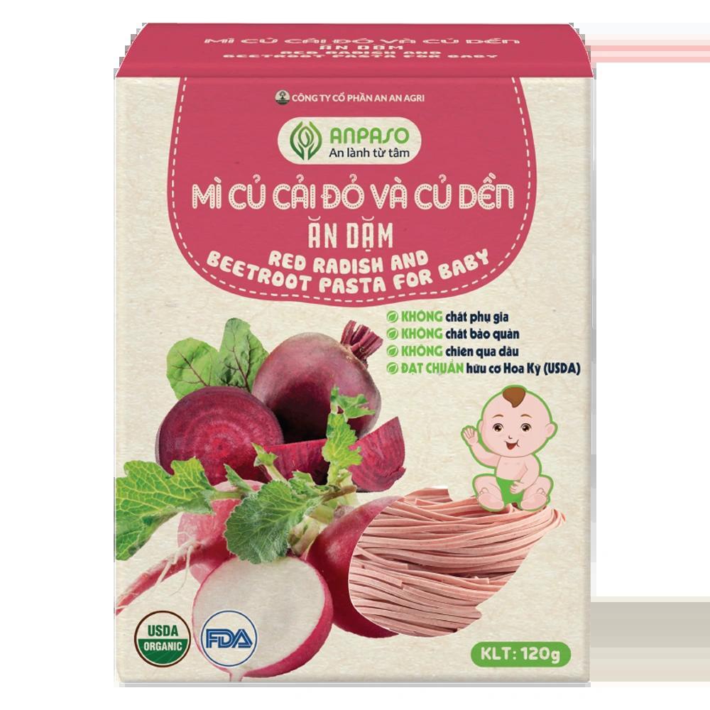 Mì củ cải đỏ & củ dền ăn dặm Anpaso giúp con làm quen với thức ăn dặm. Với hàm lượng dinh dưỡng cao, nguyên liệu hữu cơ, ba mẹ có thể chế biến Mì Anpaso thành nhiều món ăn hấp dẫn khác nhau.