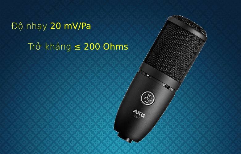 Độ nhạy 20 mV/Pa, trở kháng ≤ 200 Ohms giúp micro thu âm trên máy tính AKG P120 cho âm thu giọng hát rất ấm và sạch , cũng có thể dùng micro phòng thu thu trực tiếp các loại nhạc cụ như guitar, trống,…