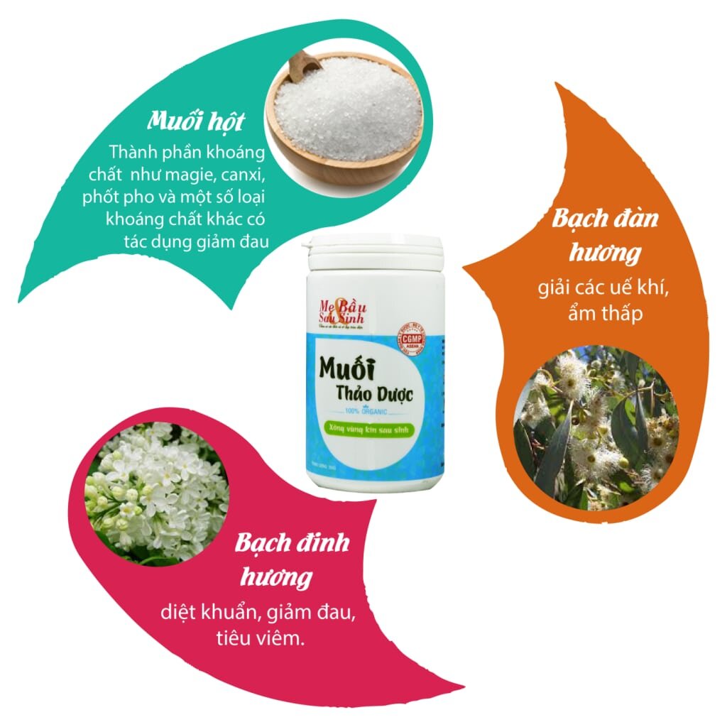 - Sát khuẩn và làm sạch vết thương. Vết thương sau sinh sẽ lành nhanh chóng nhờ quá trình trao đổi của những hoạt chất ion trong muối.