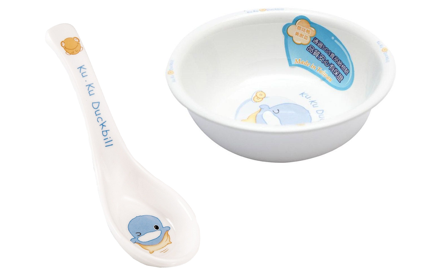Combo Chén Ăn KU3001 + Muỗng Melamine Kuku Duckbill Ku3007