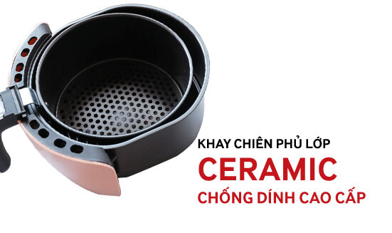 Khay chiên phủ lớp chống dính Ceramic an toàn giúp thực phẩm không bị dính, không bị vỡ nát trong quá trình chiên, rán... dễ chùi rửa sau khi dùng. Mặt kính cường lực trong suốt chịu nhiệt cao, người dùng có thể dễ dàng quan sát quá trình thực phẩm được chiên từ đó điều chỉnh nhiệt độ và thời gian phù hợp.