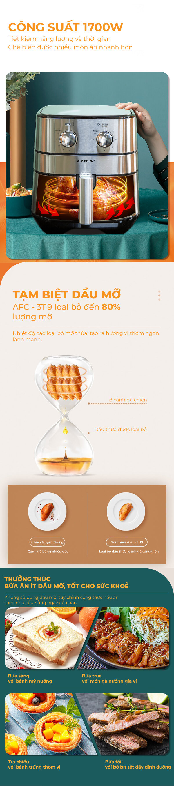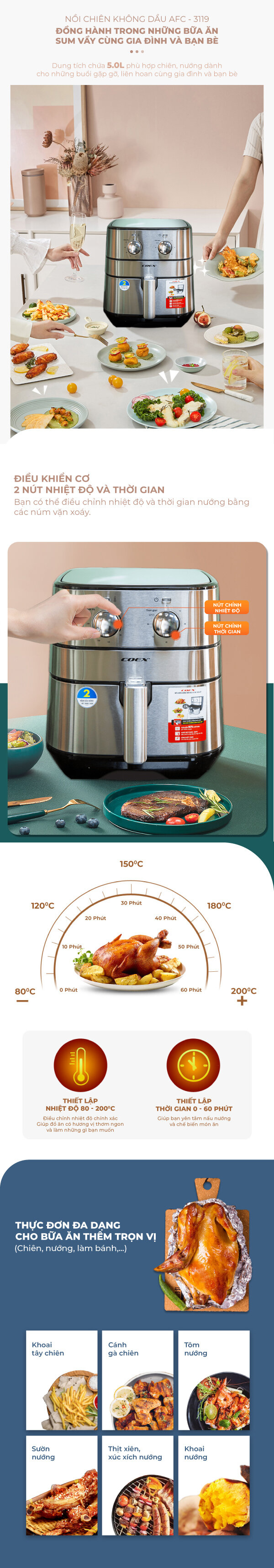 Thông số kĩ thuật Nồi chiên không dầu 5L Coex AFC-3119