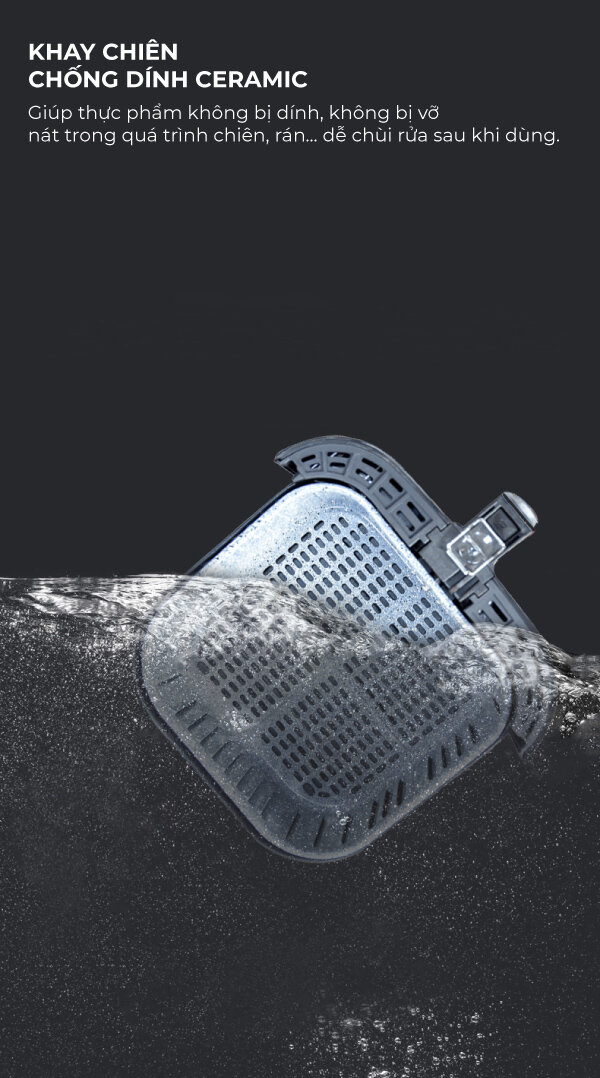 Khay chiên phủ lớp chống dính Ceramic an toàn giúp thực phẩm không bị dính, không bị vỡ nát trong quá trình chiên, rán... dễ chùi rửa sau khi dùng.