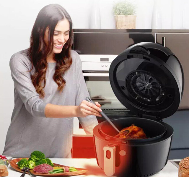 Với dung tích 7.2L, sử dụng cảm biến nhiệt độ và thời gian, điều khiển cơ với 2 nút xoay điều chỉnh nhiệt độ và thời gian. Bạn có thể điều chỉnh nhiệt độ và thời gian nướng bằng các núm vặn xoáy. Nồi sử dụng cảm biến nhiệt độ, thời gian đã được cài đặt và tự động ngắt giúp đồ ăn chín đều, giòn, ngon, không bị cháy khét. Nồi chiên không dầu phù hợp chiên, nướng dành cho gia đình trên 6 người ăn.