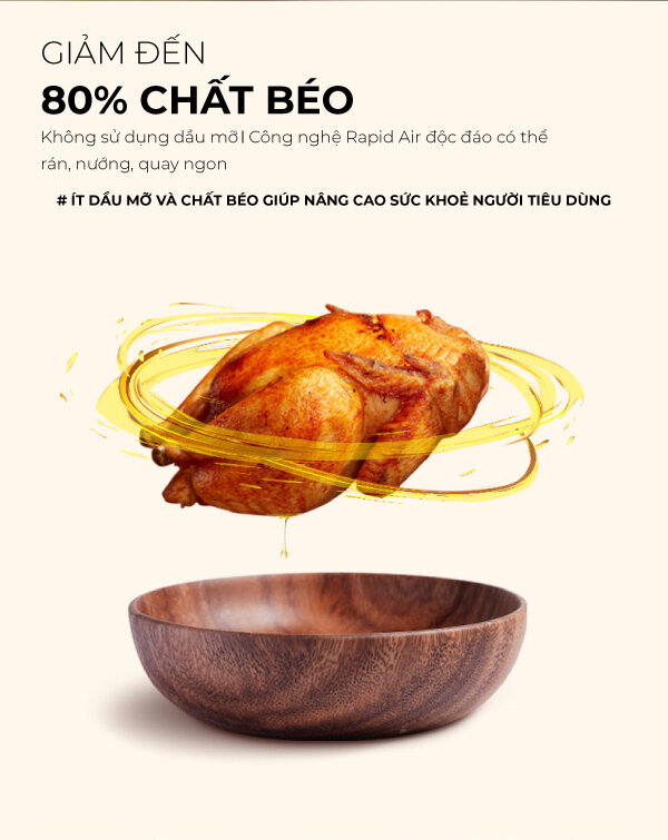 Công suất 1700W Nồi chiên không dầu Coex có công suất 1700W cho món ăn chín nhanh, ít dầu, tốt cho sức khỏe của người dùng, giúp tiết kiệm năng lượng đến 50% so với nồi thường. Công nghệ Rapid Air độc đáo có thể rán, nướng, quay ngon và giảm dầu mỡ đến 80%.
