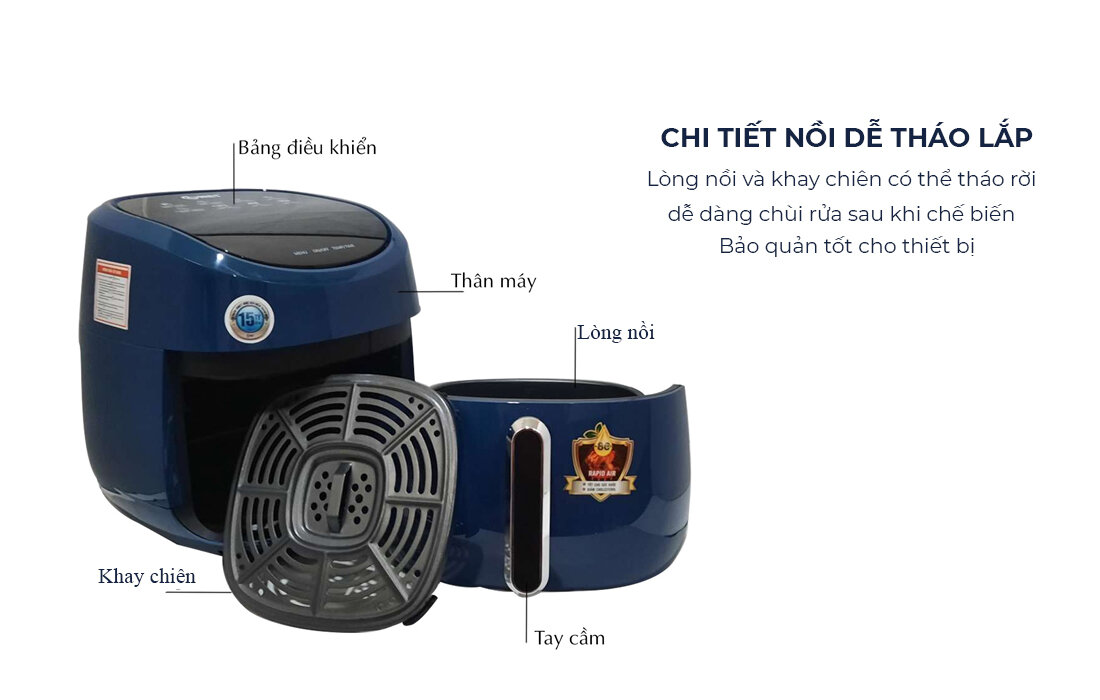 Chi tiết nồi chiên dễ dàng tháo rời giúp vệ sinh nhanh chóng