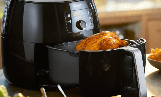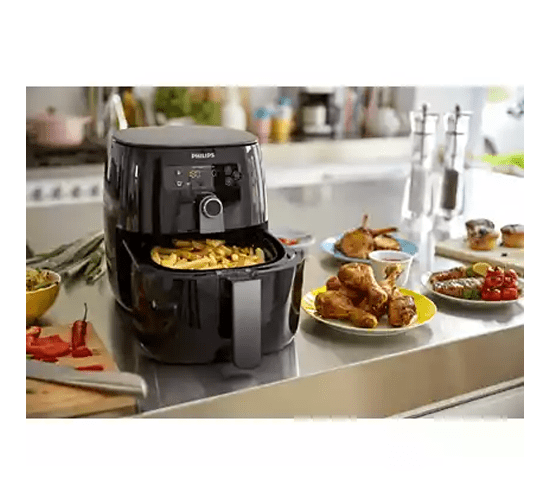 Chiên rán, nướng, quay hoặc hâm nóng thức ăn. Bạn có thể chế biến hàng trăm món ăn với nồi chiên Airfryer. Chiên rán, nướng bánh, quay giòn, nướng thịt hoặc hâm nóng thức ăn. Mỗi món ăn đều thơm ngon đến miếng cuối cùng nhờ thiết kế hình sao và luồng khí nóng của Philips cho phép không khí lưu chuyển dễ dàng. Nồi chiên này giúp thức ăn chín đều từ mọi phía để bạn có thể thưởng thức bữa ăn hoàn hảo vào mọi lúc.