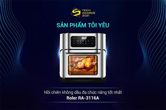 Nồi chiên không dầu điện tử đa chức năng 12 Lít ROLER RA-3116A tự hào được độc giả VnExpress bình chọn là "Nồi chiên không dầu Tốt nhất" (với số lượt bình chọn vượt trội so với những sản phẩm còn lại) trong chương trình bình chọn "Sản phẩm tôi yêu" dành cho sản phẩm gia dụng thuộc khuôn khổ sự kiện.