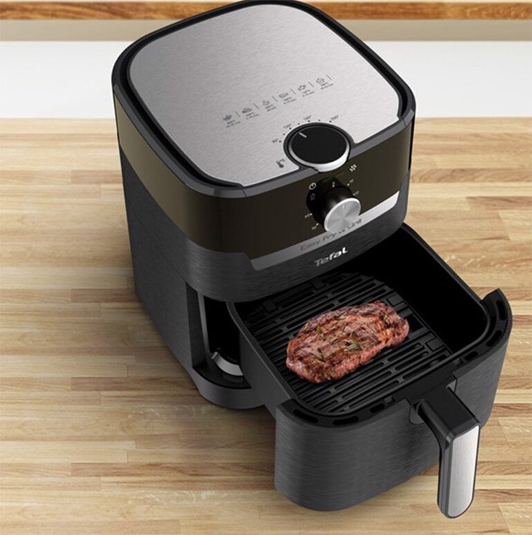 Tefal EY5018 là một nồi chiên không dầu kết hợp chức năng nướng độc đáo. Sản phẩm được trang bị 1 vỉ nướng chuyên dụng bằng nhôm đúc chất lượng cao với các đường gân nổi đặc trưng. Với công nghệ kép độc quyền này sẽ đảm bảo việc nấu ăn có lợi cho sức khỏe khách hàng, mang đến những bữa ăn đa dạng các món lành mạnh cho cả gia đình.
