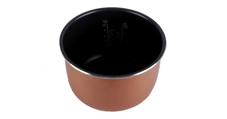 Lòng nồi dày 3mm dẫn nhiệt đều phủ lớp chống dính hạn chế tình trạng cơm cháy bám dính, dễ dàng vệ sinh. Đồng thời, lòng nồi hình bầu, thiết kế tổ ong, giúp gia nhiệt đều.