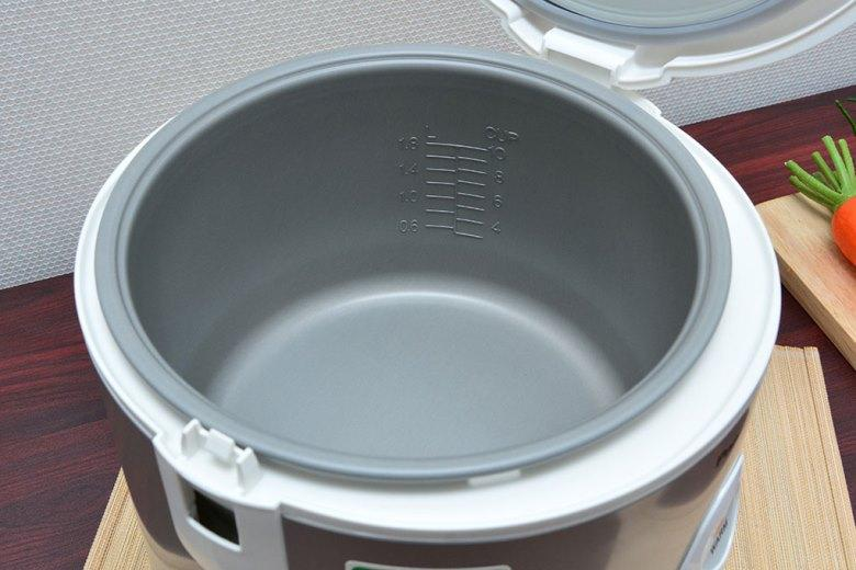 Lòng nồi được làm từ hợp kim nhôm tráng men chống dính, tránh tình trạng cơm cháy ở đáy nồi, thuận tiện cho việc vệ sinh. Bên cạnh đó, nồi truyền nhiệt nhanh, đều, giúp nấu cơm nhanh hơn. Nấu cơm ngon trong thời gian ngắn