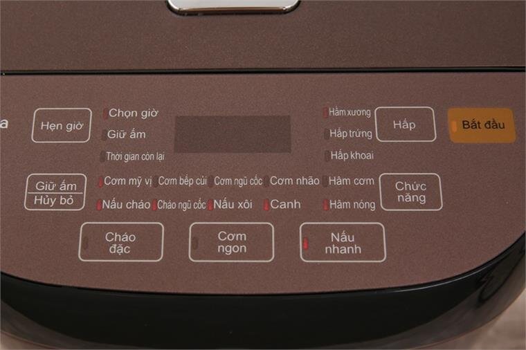 Bảng điều khiển nút nhấn có chỉ dẫn tiếng Việt rõ ràng, tùy chỉnh các chức năng nấu tự động chính xác, linh hoạt Nhiều chức năng nấu tự động như nấu cơm ngon, cơm mỹ vị, cơm bếp củi, cơm ngũ cốc, cơm nhão, nấu cháo, cháo ngũ cốc, cháo đặc, nấu xôi, nấu canh, hầm xương, hấp trứng, hấp khoai, nấu nhanh, hâm cơm, hâm nóng, giữ ấm cho người nội trợ nấu ăn đơn giản, đa dạng thực đơn mỗi ngày. Ngoài ra, nồi còn có chức năng hẹn giờ cho chị em chọn thời gian phù hợp với nhu cầu, nguyên liệu, món ăn chín ngon, bổ dưỡng hơn.