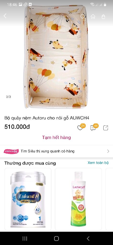 Chào Chị Bảo Ngọc, Bộ quây nệm Autoru cho nôi gỗ AUWCH4 Sản phẩm tạm hết hàng ạ. Con Cưng xin cảm ơn.