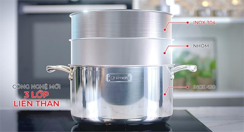 Trong cùng là lớp inox 304 cao cấp. Chính vì là phần tiếp xúc trực tiếp với thức ăn nên chất liệu mà Elmich sử dụng phải luôn đảm bảo an toàn cho sức khỏe cho dù được nung nóng ở nhiệt độ cao hay khi sử dụng lâu năm.