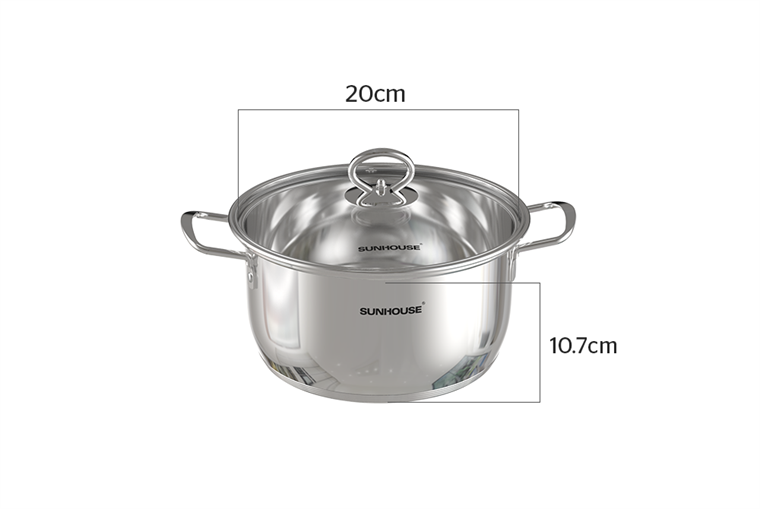 Nồi inox 5 đáy SUNHOUSE SHG788-20 sử dụng được với mọi loại bếp, kể cả bếp từ. Kích thước 20 cm thích hợp để nấu canh và nấu lượng thức ăn dành cho 2 – 4 người.