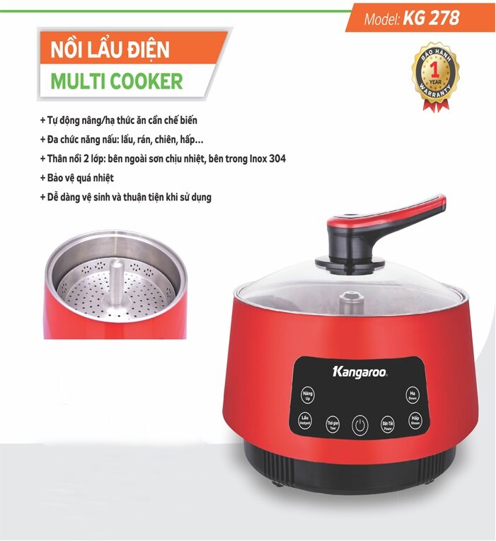 Nồi lẩu điện Kangaroo KG278 đa năng xứng đáng là thiết bị nhà bếp không thể thiếu đối với các gia đình, giúp bạn dễ dàng chế biến nhiều món ăn như lẩu, chiên, xào, hấp,… để chiêu đãi người thân và bạn bè một cách nhanh chóng và vô cùng tiện dụng.