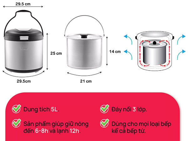 Nồi ủ La gourmet 5.0L giúp quá trình nấu nướng đơn giản hơn