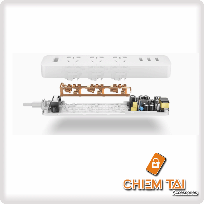 Bên dưới công tắc nhấn tắt/mở, ổ cắm Xiaomi Power Strip sử dụng mạch bảo vệ an toàn , có khả năng tự động ngắt nếu xảy ra hiện tượng quá tải hoặc hiện tượng bất thường