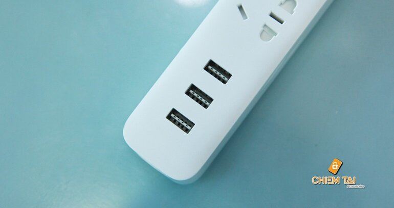 Ổ cắm thông minh Mi Power Strip được thiết kế với 3 jack cắm điện, cắm được các phích cắm từ 2 chấu đến 3 chấu, tròn hay dẹp đều có thể cắm được. Ngoài ra còn được tích hợp 3 khe cắm USB.