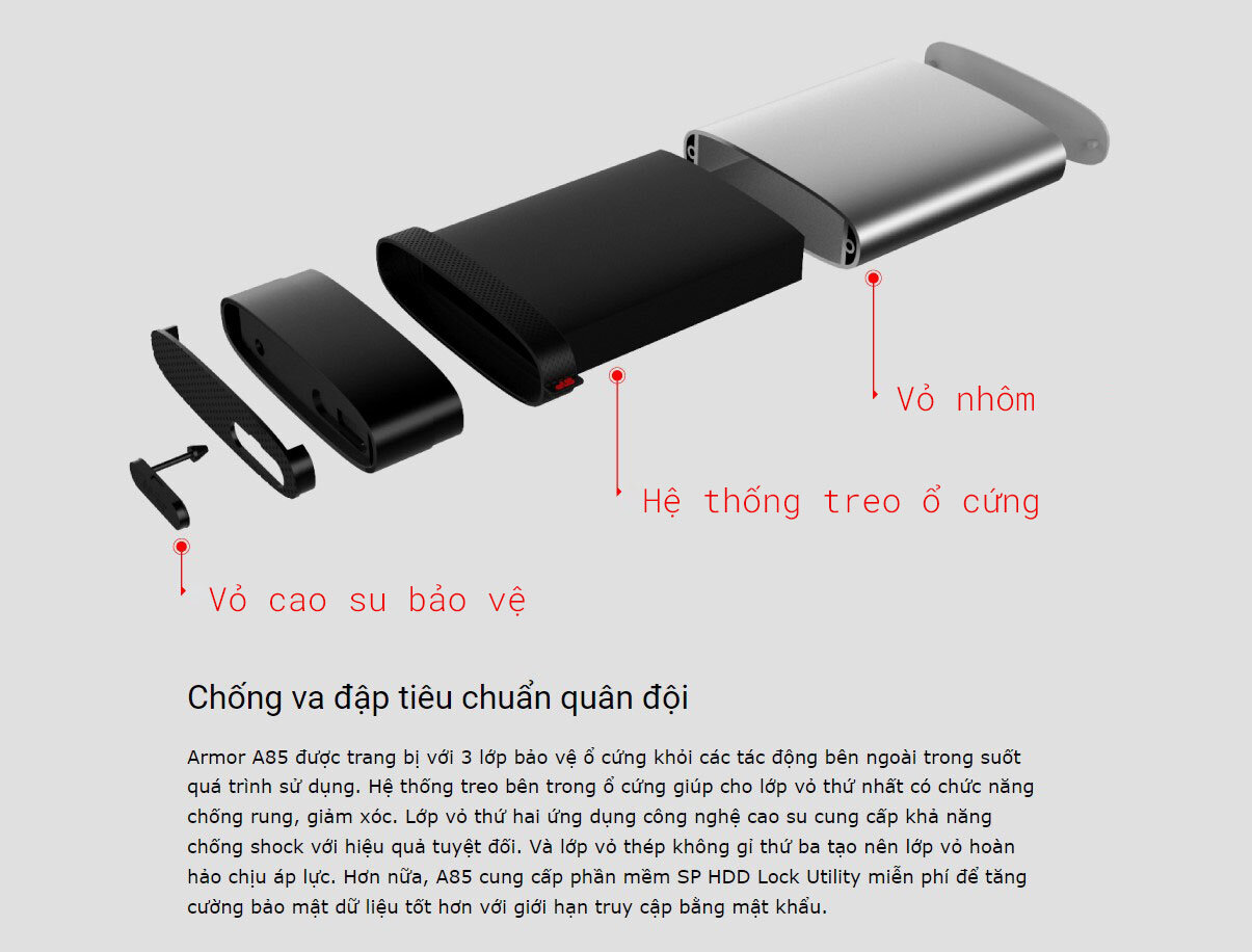 Ổ cứng di động SILICON POWER Armor A85 là dòng ổ cứng siêu bền, tối ưu giữa dung lượng lưu trữ và giá thành trong ghi vẫn giữ được tốc độ đọc/ghi ổn định cùng khả năng bảo vệ dữ liệu tuyệt vời.