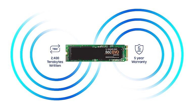 TBW cao hơn tới 8 lần (Terabyte được viết) * so với 850 EVO. Cảm thấy an toàn khi lưu trữ và hiển thị video 4K kích thước lớn và dữ liệu 3D được sử dụng bởi các ứng dụng mới nhất. Samsung 860 EVO với công nghệ V-NAND được bảo hành 5 năm. *