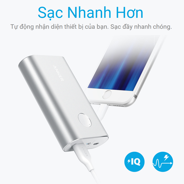 Qualcomm Quick Charge 2.0. Sạc nhanh hơn 75% đối với điện thoại hoặc thiết bị hỗ trợ công nghệ Qualcomm Quick Charge 2.0. Sạc được 60% dung lượng pin chỉ sau 30 phút sạc. Sạc nhanh Công nghệ sạc nhanh độc quyền PowerIQ và công nghệ ổn định dòng VoltageBoost tự động nhận diện thiết bị của bạn, cung cấp tốc độ sạc nhanh nhất có thể. Cung cấp tốc độ sạc nhanh nhất đối với cả các thiết bị không hỗ trợ qualcomm quick charge 2.0. Lưu ý: Sản phẩm này nếu bạn sạc bằng củ sạc có hỗ trợ Quick Charge thì sản phẩm sẽ hơi nóng trong giai đoạn pin dưới 60% (thời gian sạc chỉ khoảng 2h là đầy 60%). Khi pin đầy trên 80% thì sẽ nguội dần. Điều này là bình thường.