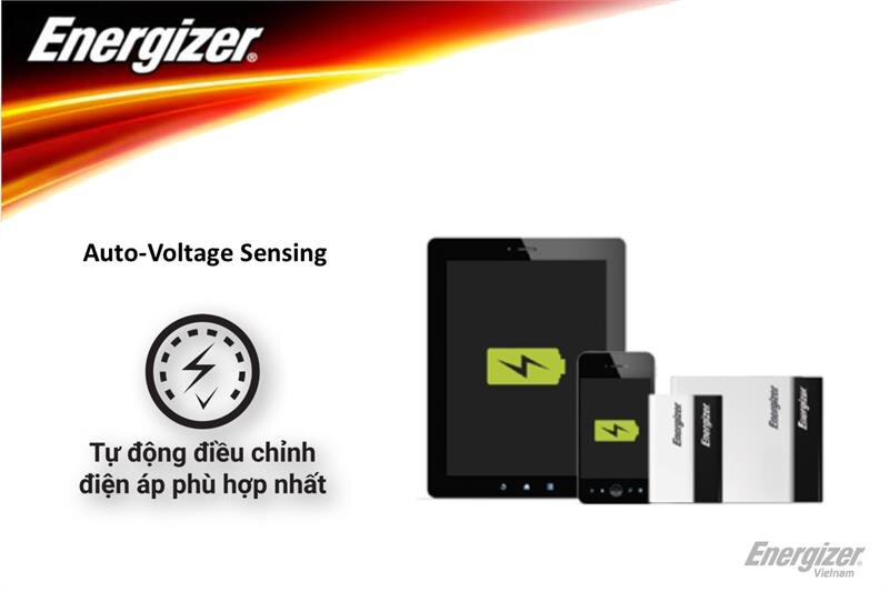 Một trong những tính năng nổi trội của các dòng pin sạc dự phòng Energizer – Auto Voltage Sensing. Tính năng này giúp pin Energizer tự động cảm biến điện áp để tương thích và luôn nằm trong giới hạn an toàn, phù hợp cho mọi thiết bị công nghệ