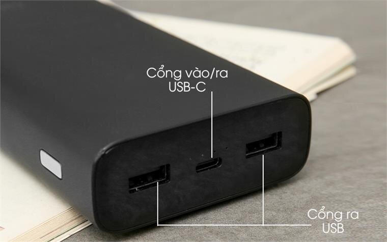 Nạp năng lượng cho pin dự phòng qua cổng USB-C, theo dõi dung lượng qua đèn báo hiển thị Bạn sẽ mất khoảng 19 - 20 giờ để nạp đầy pin cho pin sạc dự phòng khi dùng Adapter 1A và 10 - 11 giờ khi dùng Adapter 2A.