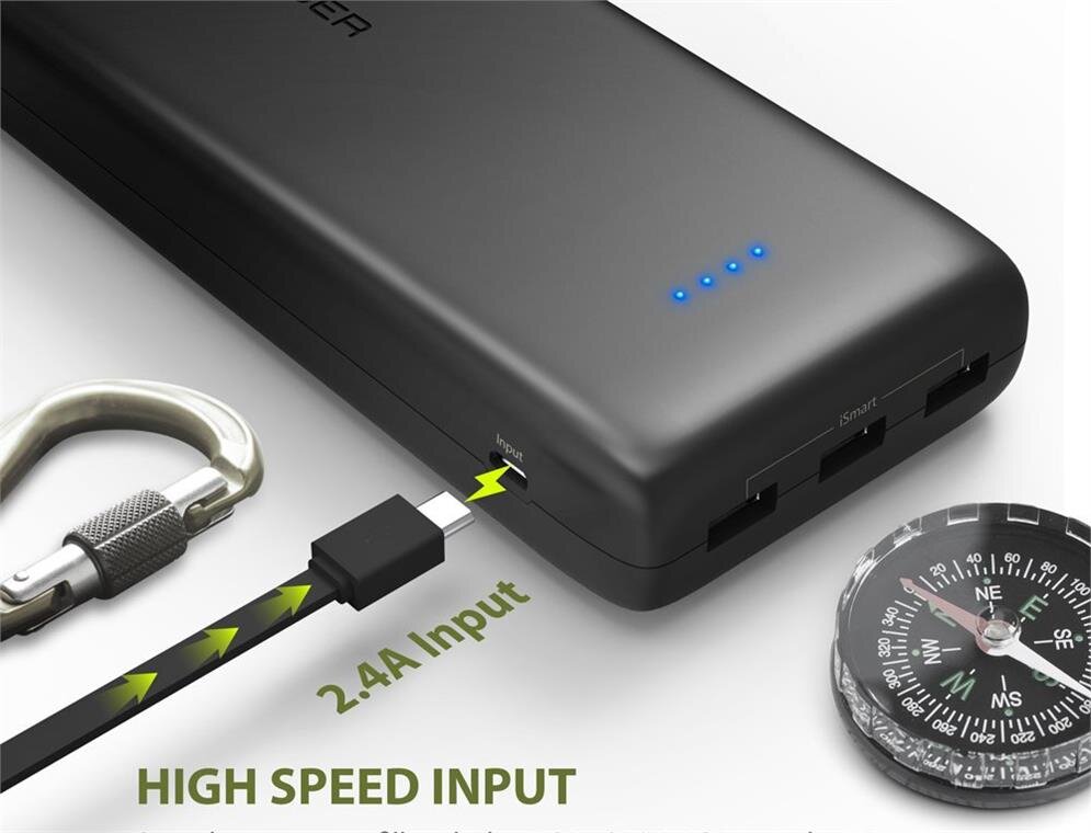Sạc cùng lúc 3 thiết bị di động Sạc pin dự phòng có 3 cổng USB i-Smart cung cấp nguồn ra lên tới 6A (Tối đa 2.4A mỗi cổng) để nạp điện cho smartphone và máy tính bảng một cách nhanh chóng vào cùng một thời điểm - tuyệt vời cho các nhà thám hiểm, du khách,... Các cổng USB thông minh này có khả năng nhận dạng thiết bị thông minh và điều chỉnh đầu ra cho phù hợp dựa trên công nghệ sạc thông minh iSmart 2.0 độc quyền của RAVPower.