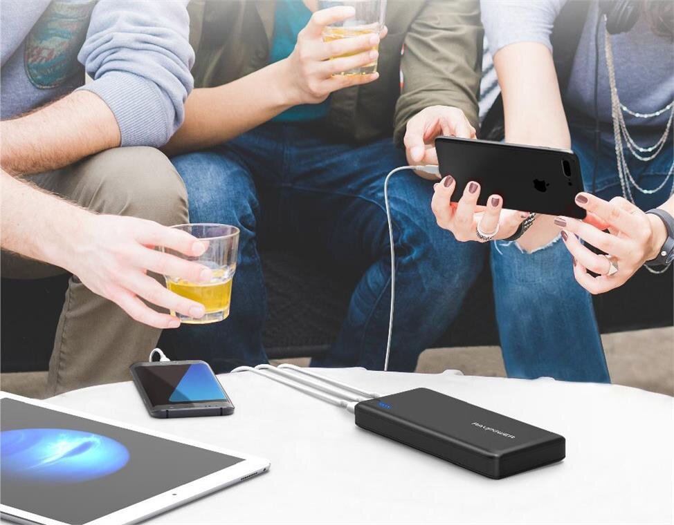 Dung lượng khủng 26800mAH giúp sạc được nhiều lần các thiết bị Sạc nhanh cùng lúc 3 thiết bị với Pin dự phòng cao cấp Ravpower Củ sạc mà bạn sử dụng hàng ngày chỉ có thể sạc một thiết bị, với RAVPower RP-PB41 giờ đây bạn không phải chờ đợi để sạc từng thiết bị di động. Pin dự phòng cao cấp có thể sạc cùng lúc ba thiết bị đồng thời. Nếu bạn quan tâm đến việc sạc ba pin cùng một lúc sẽ làm chậm thời gian sạc thì hãy suy nghĩ lại. Với 3 cổng USB thông minh iSmart cho tổng dòng điện ra là 5.5A ( tối đa 2.4 A mỗi cổng ) thì tất cả các thiết bị sẽ được sạc với tốc độ nhanh nhất, hiệu quả nhất.