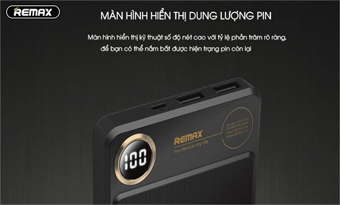 Tính năng an toàn, tiện dụng Với dung lượng lớn của pin dự phòng Remax RPP – 59 20.000mAh, thời gian để sạc đầy pin rơi vào khoảng 10 – 12 tiếng và được sử dụng để sạc điện thoại khoảng từ 6 – 8 lần liên tục, có thể nhiều hoặc ít hơn tùy vào từng loại pin và máy khác nhau. Đây cũng chính là đặc điểm nổi bật của chiếc pin dự phòng này. Kết hợp dung lượng lớn là công suất của pin cũng không hề nhỏ khi lên tới 76 watt, việc sạc pin cũng sẽ trở nên thuận tiện và thoải mái hơn.