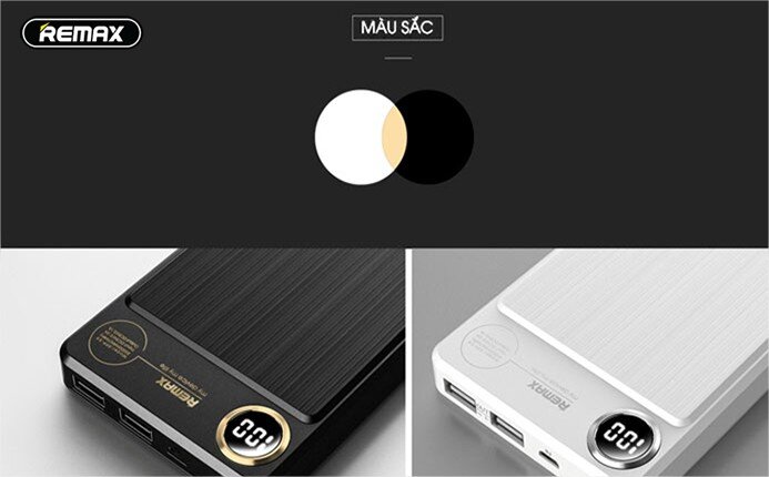 Thiết kế dòng kẻ trên pin ấn tượng Được thiết kế với 2 màu chủ đạo là đen và trắng, Pin dự phòng Remax RPP – 59 20.000mAh thể hiện sự tinh tế, sang trọng và dễ dàng cho người dùng lựa chọn: màu đen trung tính với vẻ lịch lãm, mạnh mẽ và màu trắng tươi sáng tạo nên sự nhẹ nhàng thanh lịch.