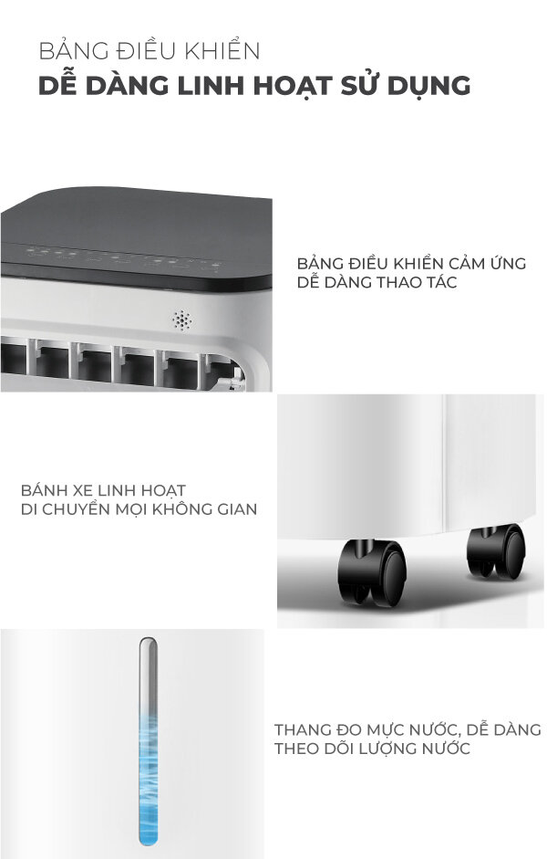 Điều khiển dễ dàng, linh hoạt sử dụngQuạt điều hòa Coex CA-7112 trang bị bảng điều khiển cảm ứng dễ dàng thao tác, kèm remote từ xa đa chức năng, hẹn giờ tắt 0-7.5 tiếng. Coex CA-7112 có 4 bánh xe lớn nên rất dễ di chuyển giữa các không gian khác nhau.
