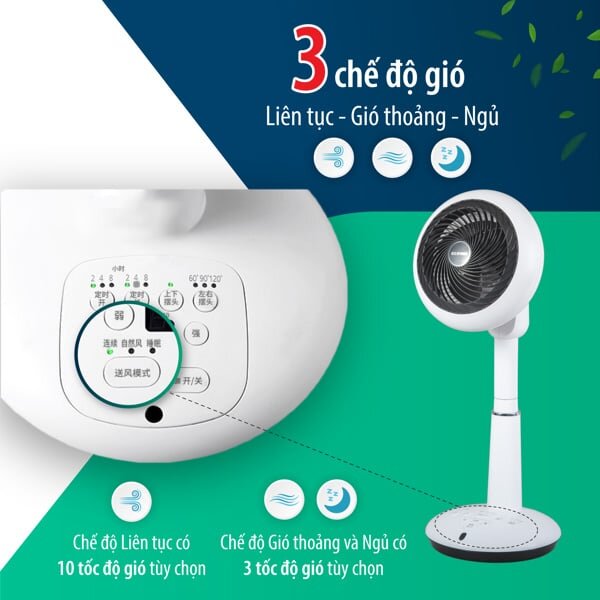 có kích thước nhỏ gọn với nhiều tính năng ưu việt và hiện đại phù hợp dùng với phòng điều hòa, máy sưởi,… giúp đẩy lưu thông không khí, ổn định nhiệt độ trong phòng, bảo vệ tối ưu cho sức khỏe của gia đình bạn.