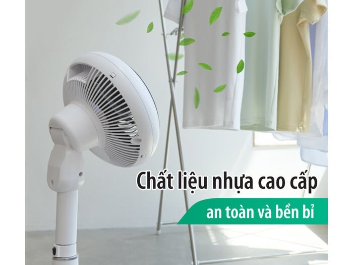 Quạt được làm bằng chất liệu nhựa cao cấp an toàn và bền bỉ. Ngoài ra, lồng quạt được thiết kế thông minh giúp luồng gió thổi rộng hơn, xa hơn và dễ dàng tháo rời để vệ sinh.