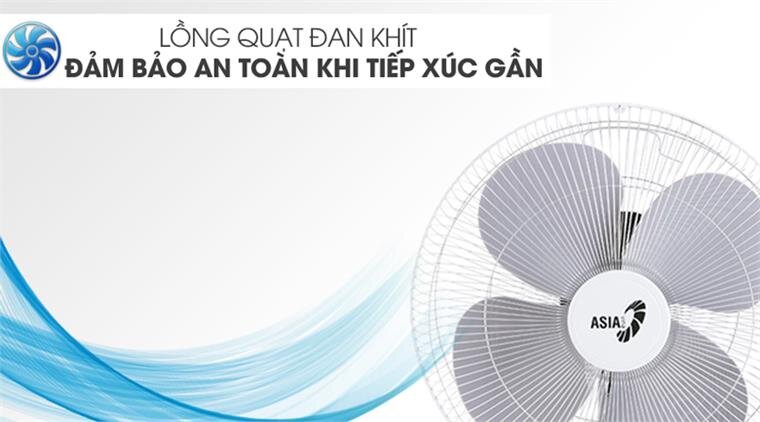 Lồng quạt có các nan đan khít, đảm bảo an toàn khi đến gần hoặc vô tình chạm vào quạt khi đang hoạt động, có thể tháo rời giúp cho việc vệ sinh quạt dễ dàng hơn