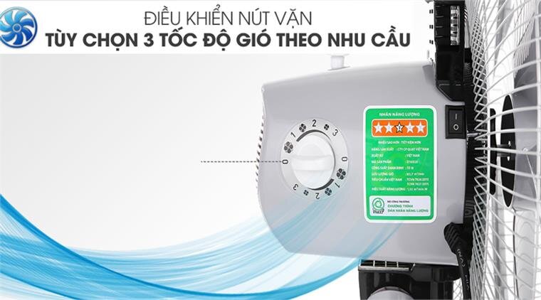 Điều khiển sử dụng nút vặn nên dễ dàng thao tác bởi bất cứ ai kể cả người lớn tuổi hay trẻ em Có 3 mức độ và 2 chế độ gió cho bạn tự do lựa chọn luồng gió mát phù hợp với từng sở thích và mục đích sử dụng.