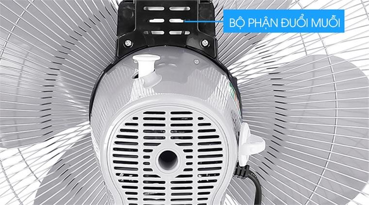 Quạt còn được thiết kế ngăn chức năng đuỗi muỗi góp phần bảo vệ sức khỏe cho gia đình Bạn có thể mua hộp đuổi muỗi ở siêu thị, cửa hàng bách hoá,... để trong ngăn đuổi muỗi để toả mùi hương đuổi mũi trong phòng