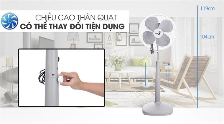 Chiều cao thân quạt Asia có thể thay đổi tùy theo nhu cầu của bạn