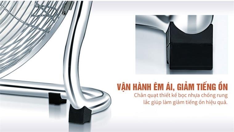 3 TỐC ĐỘ GIÓ GIÚP BẠN DỄ DÀNG ĐIỀU CHỈNH THEO NHU CẦU SỬ DỤNG Sản phẩm tích hợp 3 tốc độ gió từ nhẹ cho đến mạnh nên bạn có thể dễ dàng điều khiển mức gió phù hợp với nhu cầu sử dụng bằng thao tác xoay núm vặn trên hộp động cơ. VẬN HÀNH ÊM ÁI, GIẢM TIẾNG ỒN Chân quạt thiết kế bọc nhựa chống rung lắc giúp làm giảm tiếng ồn hiệu quả.