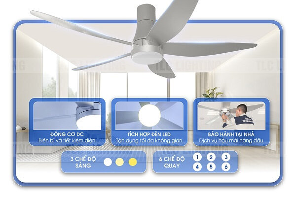 Với động cơ DC tiên tiến và công suất tối đa chỉ 56W, quạt trần TLC-QTL không chỉ mang lại hiệu suất làm mát tối ưu mà còn tiết kiệm điện năng một cách đáng kể. Trong bối cảnh giá điện ngày càng tăng, việc đầu tư vào một chiếc quạt trần thông minh như TLC-QTL có thể giúp tiết kiệm chi phí lâu dài mà vẫn đảm bảo không gian sống luôn thoáng mát.