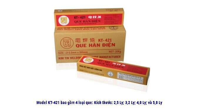 - KT-421 là que hàn cacbon thấp phù hợp dùng cho mối hàn thép Cacbon và thép hợp kim thấp, có kết cấu tải trọng trung bình, như kiến trúc dân dụng, kết cấu nhà xưởng công nghiệp, chi tiết máy.