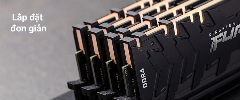 Ram Desktop Kingston Fury Renegade RGB 16GB (2x8GB) DDR4 3200Mhz (KF432C16RBAK2/16) có thiết kế Plug N Play, chỉ cần cắm và chạy, hệ thống sẽ có khả năng tự động nhận diện bus RAM mà không cần bạn tốn công cài đặt phức tạp.