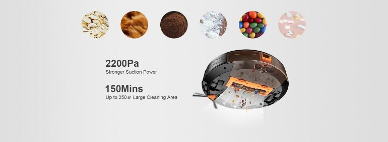Với lực hút lên tới 2200Pa, Cybovac E31 có thể dễ dàng hút sạch bụi bẩn, bụi nhỏ, vụn thức ăn và cả lông thú cưng nằm sâu dưới thảm. Ngoài ra, thân máy của Cybovac E31 cực kỳ mỏng, chỉ 7,24cm, dễ dàng len lỏi đến mọi ngóc ngách giúp sàn nhà luôn sạch sẽ, sáng đẹp như mới.