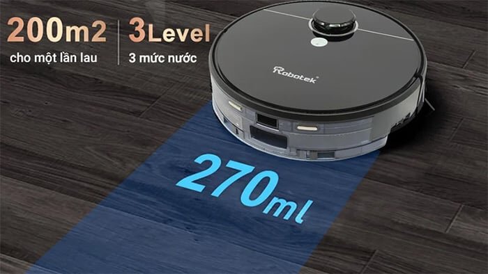 tích hợp 2 chức năng hút bụi và lau nhà với thiết kế nhỏ gọn phù hợp diện tích 200m2. Robotek W800 thích hợp với nhiều bề mặt sàn khác nhau như sàn gỗ, sàn gạch, sàn đá và sàn thảm (độ cao dưới 2cm).